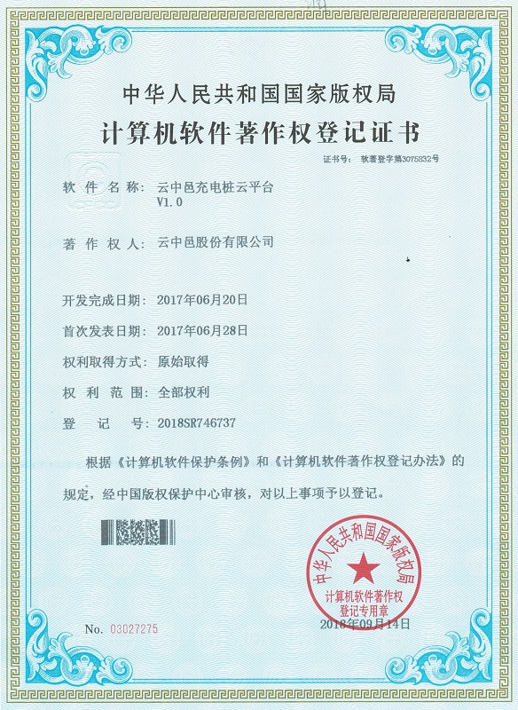 3. 充電樁云平臺(tái)軟件著作權(quán)、專利、商標(biāo)、權(quán)威檢測(cè)、產(chǎn)品高額保險(xiǎn)等全方位保護(hù);